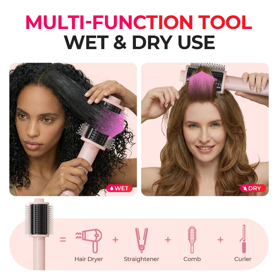 Make the VOLUMIZER from TYMO your choice - a hot air brush that combines a dryer, straightener, and curler in one 3-in-1 styler to change your look and lifestyle for good. A blow dryer that straightens hair and blows out in one incredible tool that TYMO has perfected just for you. The most professional round brush blow dryer: black and pink hair dryer and styler for your choice.